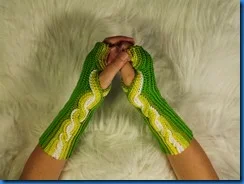 after a pattern on ravelry i crocheted some fingerless mittens, i adjusted the thumbhole a bit … shorter at the arm, and longer to the fingers